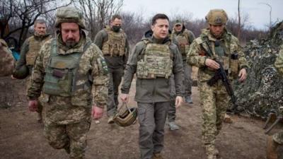أوكرانيا 19 أبريل 2023 زيلينسكي يشيد بالقوات أثناء زيارة إلى شرق أوكرانيا أكد مكتب الرئيس الأوكراني، فولوديمير زيلينسكي، أنه زار القوات في أفدييفكا بشرق أوكرانيا، الثلاثاء، ووجّه لها الشكر على خدماتها، كما أطلعه