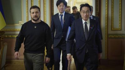 أوكرانيا 22 مارس 2023 قاذفتان استراتيجيتان روسيتان تحلقان فوق بحر اليابان كيشيدا يلتقي زيلينسكي في زيارة مفاجئة إلى كييف التقى الرئيس الأوكراني فلودومير زيلينسكي، أمس الثلاثاء، في كييف رئيس الوزراء الياباني فوميو كيشيدا التي وصلها في زيارة مفاجئة للتعبير عن التضامن