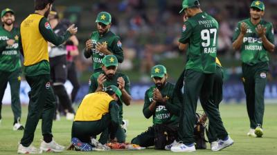 رياضة دولي 24 مارس 2025 إفطار في ملعب كريكيت أفطر لاعبو منتخب باكستان في الملعب وخلال المباراة مع نيوزيلندا في بطولة توينتي 20 العالمية.