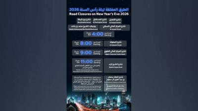 أخبار من الإمارات 31 ديسمبر 2025 لتنظيم حركة السير ليلة رأس السنة «طرق ومواصلات دبي» تكشف تفاصيل «خطة الـ 4 مراحل» تشغيل المترو 43 ساعة متواصلة وإغلاقات مرحلية لتأمين الفعاليات أعلنت هيئة الطرق والمواصلات بدبي، خطتها التشغيلية الشاملة لإدارة حركة المرور وخدمات